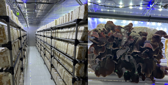 現在は、11m×12mの密閉型栽培庫で、5600個の菌床を管理し、1日20〜30kgの生キクラゲを収穫。温湿度やCO₂を自動制御するシステムで、スマホで状態を確認できる最新式です。栽培された「彩のきくらげ」は無農薬で品質が高く、希少価値の高い国産の高付加価値商品として高級食材店や高級レストランに卸されています。